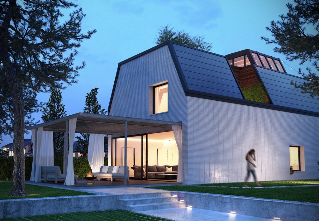 Un guscio che protegge, una “roccia” sicura che riserva al suo interno, come in una magia, una luminosità ed uno spazio aperto che guarda fino al cielo, grazie al suo tetto-terrazza – in parte vetrato - che può diventare un vero e proprio giardino pensile. Ispirata alla “cascina”, ottimizza con intelligenza ogni centimetro del proprio volume sia al proprio interno che all’esterno, al punto da poter essere inserita anche tra altri edifici, in spazi urbani. La forma caratteristica della copertura è frutto della capacità di sfruttare al massimo lo spazio, garantendo la perfetta abitabilità del sottotetto. La sua compattezza azzera gli sprechi e garantisce eccellenti performance energetiche.